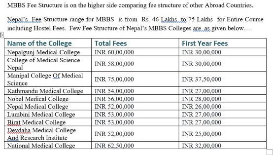 - The program expense for MBBS in Nepal is incredibly spending plan amicable, and numerous organizations likewise give understudies a possibility for paying the charges in portions.
